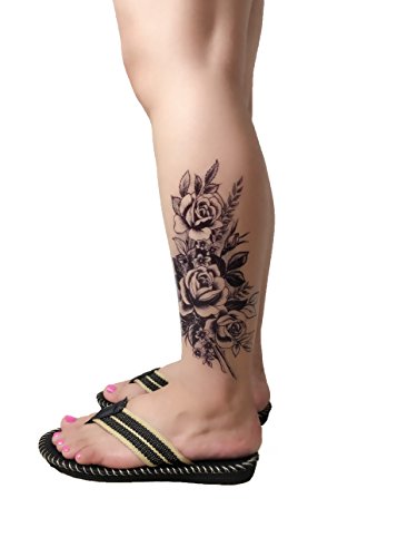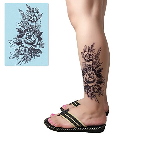 DaLin 4 Sheets Temporary Tattoos for Women (Black Rose)
