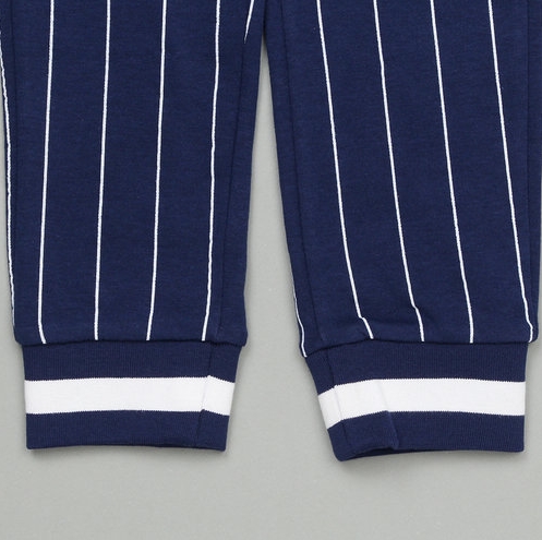 -남여공용 핀스트라이프 조거 팬츠. 핀 스트라이프 코튼 조거 팬츠로 71MT26911과 세트 착장 제안하는 아이템.