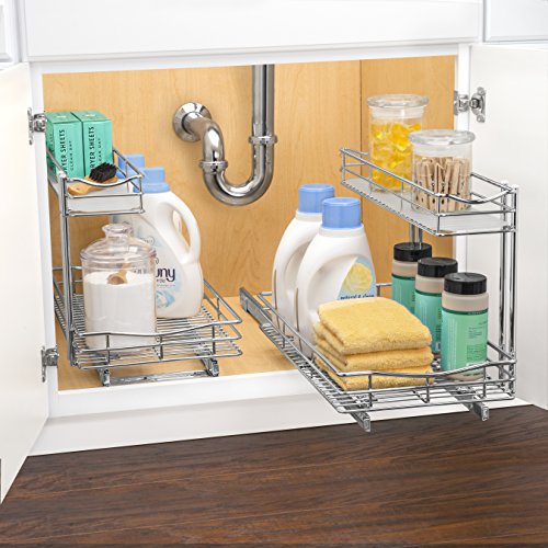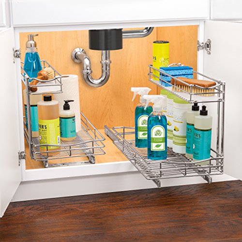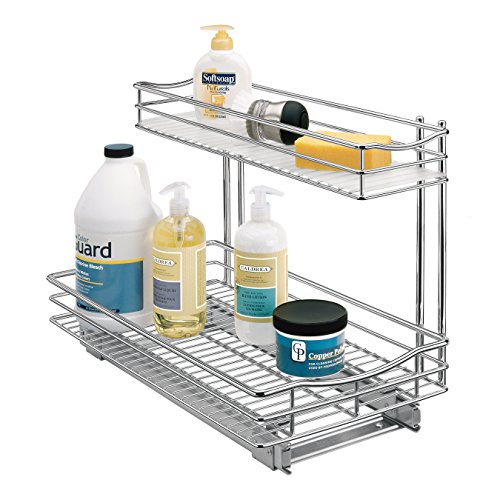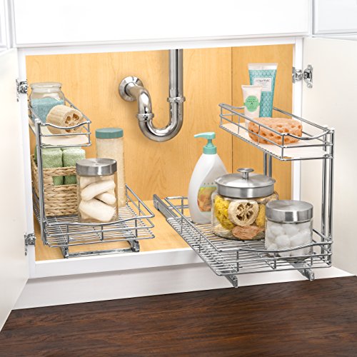 Lynk Professional Roll Out Under Sink Cabinet Organizer - Pull Out Two Tier Sliding Shelf - Chrome - Multiple Sizes