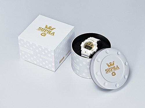 Introducing a new watch model that is the product of collaboration between the G-SHOCK S Series and the SUPRA brand, which boasts a following of celebrities and young people who prefer street casual skateboard designs.The base model is the GMD-S6900. A basic white motif is offset by a SUPRA sneaker polka dot pattern that covers the case and band. All of the dots are of a similar color, creating a cool, monotone look. The face, band, and back case sport the SUPRA brand logo, and the polka dots on the package identify this a truly special model. SUPRA is an independent footwear innovator and multinational lifestyle brand founded in Southern California in 2006 by Angel Cabada and Scott Bailey. Inspired by passion, SUPRA fuses fashion, music, skateboarding, art, and street to bring classic silhouettes to those who demand unique designs.Today, SUPRA, operates flagship stores in Santa Monica, New York City, Brooklyn, Paris, and Tokyo and distributes to over 60 countries through a network of select skate shops and high-end boutiques. G-shock Supra Collaboration Watch Gmd-s6900sp-7dr White Limited Edition.Feature