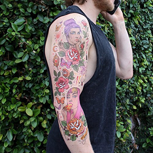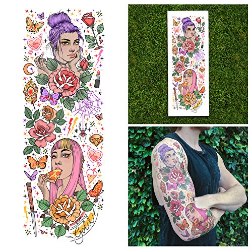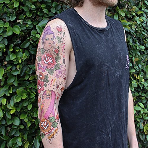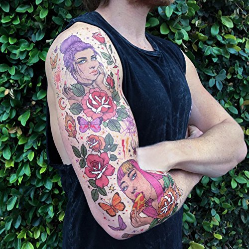 - WHAT'S INCLUDED: 3 Tattoo Sleeves 18" x 6". Application instructions included. Perfect for Halloween, cosplays, photoshoots, club nights, birthdays, arts & crafts projects, festivals, charity events, and sports games. Tattoo body art is suitable for men, women, boys and girls. Apply faux tats on your own ankle, arm, belly button, face, foot, forearm, lower back, hip, neck, chest shoulder, waist, upper back, wrist or anywhere in between!