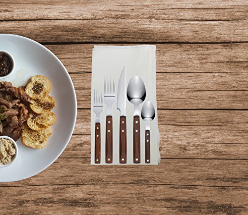 INCLUDES NAPKIN SETTING - You'll Benefit From A Brand New Set of Four 100% Cotton Dinner Napkins To Pair with Your New Wood Handled Stainless Steel Flatware
