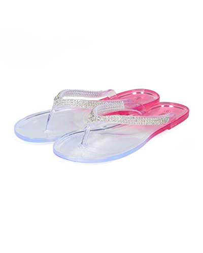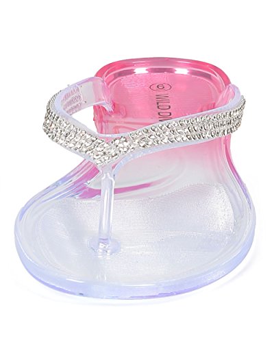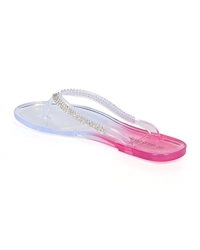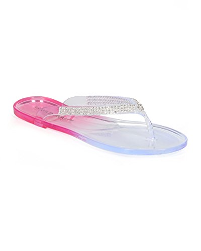 (Wild Diva)/Women's/Sandals/DIRECT FROM USA/Wild Diva CG40 Women Clear Ombre Jelly Rhinestone Flip Flop Sandal - Fuchsia