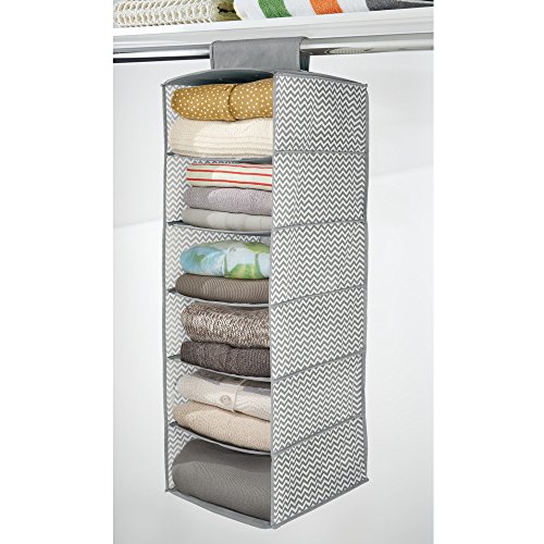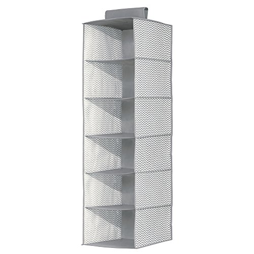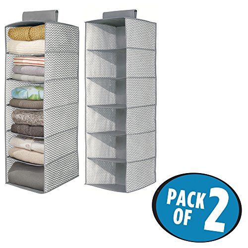 mDesign Chevron Fabric Hanging Closet Storage Organizer, for Sweaters, Blankets - Pack of 2, 6 Shelves, Gray/Cream