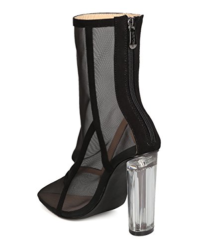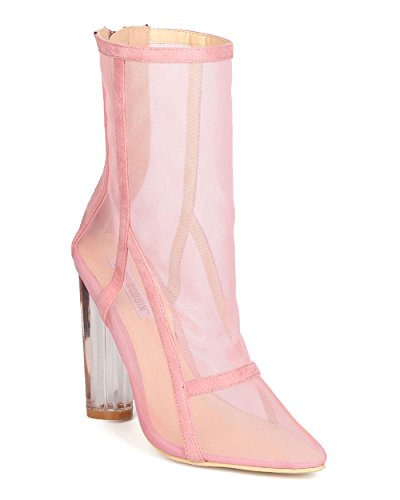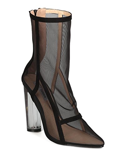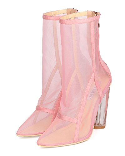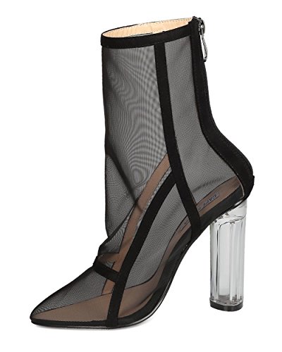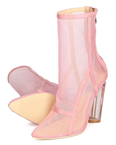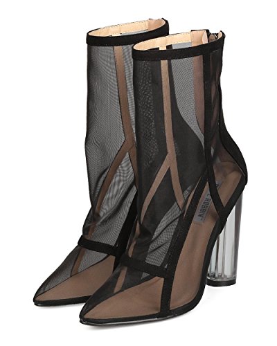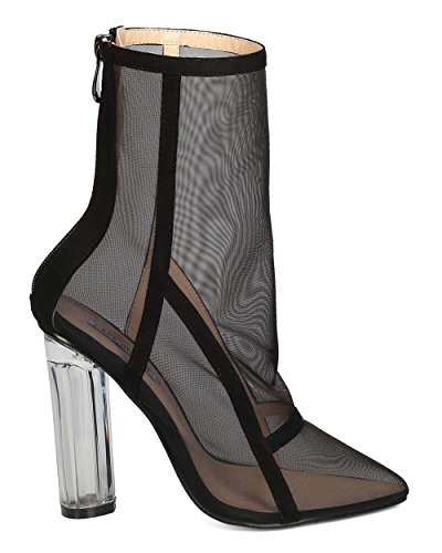 Studio : Cape Robbin Publisher : Cape Robbin Binding : Apparel Product Description These transparent boots are made with a mesh upper, pointy toe, and single sole. Faux suede trim is added for a lush feel. Also made with a clear lucite heel and hind zip for easy slip on and off. 0