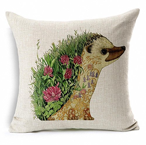 E-sunshine®Thick Cotton Blend Linen Square Throw Pillow Cover Decorative Cushion Case Pillow Case 18 X 18 Inches / 45 X 45 cm, Cartoon Animal Patterns (hedgehog)