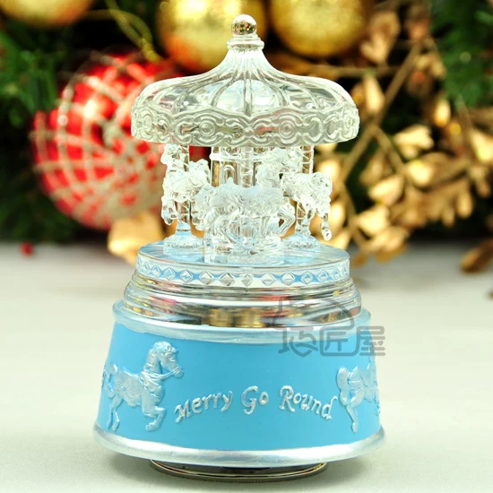 [Product Description]: Craftsman house mini voice luminous color carousel music boxes, high-grade acrylic material, crystal, fine workmanship, the base resin material, beautifully carved above the Trojan pattern, internal music movement is world's third largest music bell brand manufacturers sankyo music movement, silver dial that music bottom winding, twisting this spring, the product as a whole will rotate with the music!