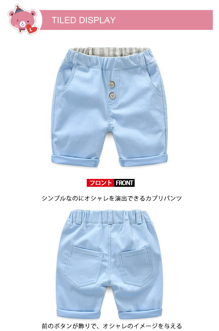 | シンプルなのにオシャレを演出できるカプリパンツ前のボタンが飾りで、オシャレのイメージを与える後ろのポケットは簡単に見えるが、上品が落とさずゴムウエストで伸縮性のあるので、着心地抜群この夏をゆるーく楽しめるアイテム | |