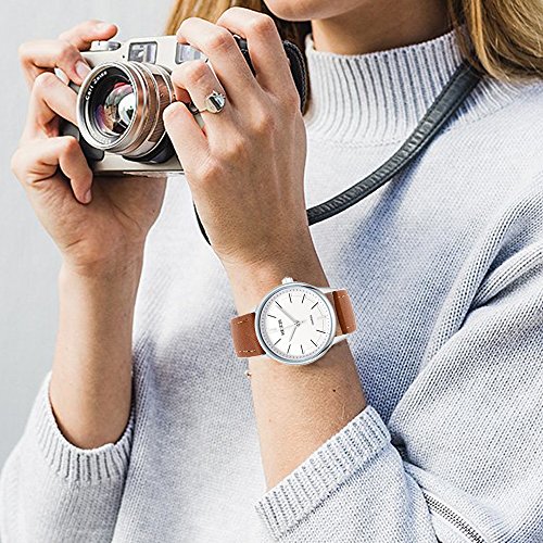 -. Title : Wutan Women's Watch Stainless Steel Case Brown Leather Band Sports Watches Analog Quartz Casual Classic Fasion Ladies Dress Wristwatches Waterproof