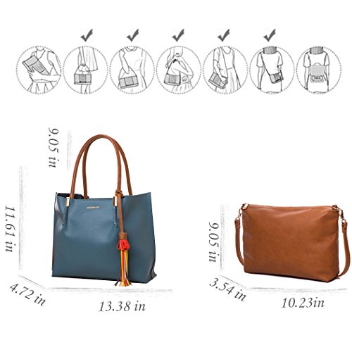 -. Feature : Material: High quality of PU leather / Type of bag: Shoulder bag and top-handbag,cross-body bag . / Lager DIMENSIONS: 13.39''x 4.72''x 11.60'inches (L x W x H),Handle height: 9.06 Inches. Small :10.24''x 3.54''x 9.06''inches.adjustable shoulder straps with 23.5"drop. / Nice and comfort straps in lager bag, enough space for carry laptop and paper document. Customer can put their wallet, smart phone into small bag with zipper protection, more security / Explain: The P.R.Ice include 2 different size bags in same color. Two bags are bundling selling