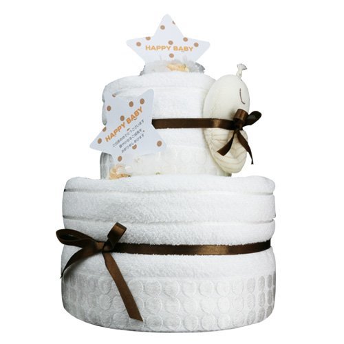 -. Title : 今治おむつケーキ ウォッシュ&バスタオル付き 白銀(白)【出産祝い/内祝い】日本製