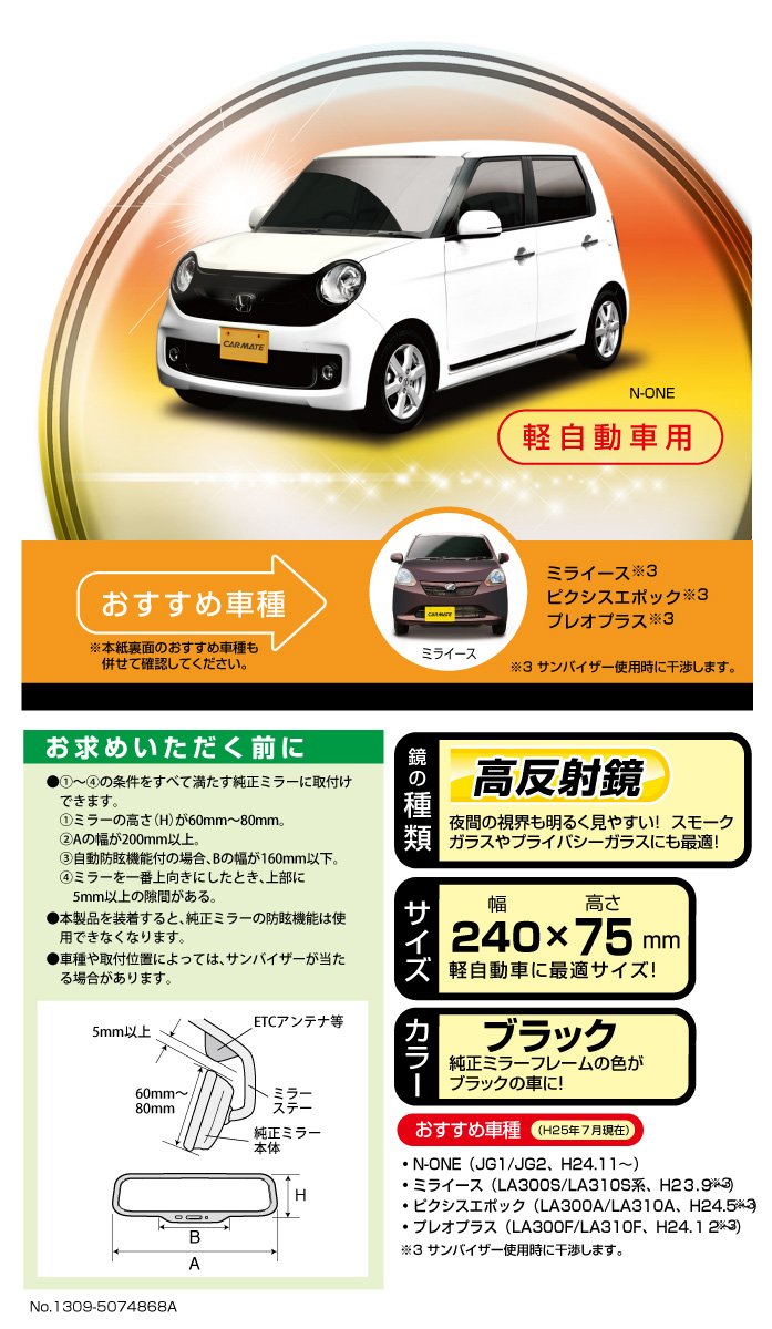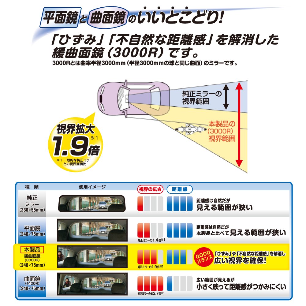 Carmate really easy-to-read 3000R mirror light for 240mm black M33