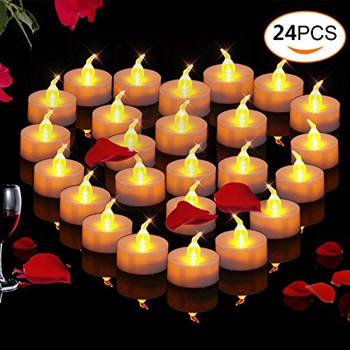 24 Pcs Flameless LED Tea Lights, FATPET Amber Yellow Fake Candles,Battery Operated votive Tea Lights Realistic and Bright effect for Christmas Party Wedding(L)