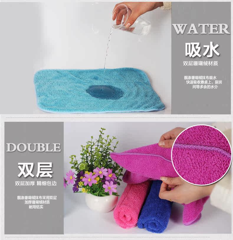 5条加厚珊瑚绒抹布双层吸水不掉毛擦地板家具玻璃厨房洗碗毛巾