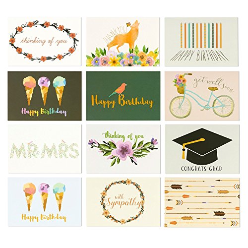 48 PACK ASSORTED ALL OCCASION GREETING CARDS - INCLUDES BIRTHDAY, WEDDING, THANK YOU NOTE CARDS ASSORTMENT - BULK BOX SET VARIETY PACK WITH ENVELOPES INCLUDED - 48 DESIGNS - 4 X 6 INCHES