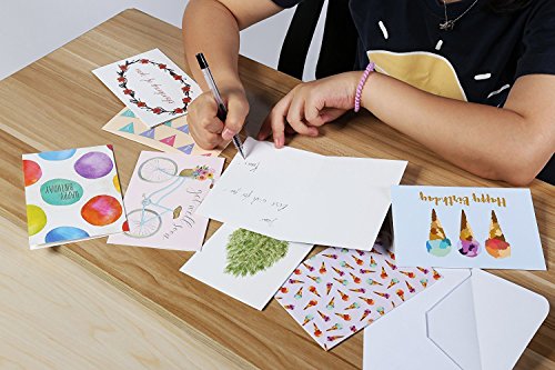 This assorted pack of 48 unique greeting cards will prepare you for all your card-sending needs! Cut the hassle of rushing to the store and overpaying for cards. This pack consists of 48 greeting cards to include your very own custom messages for corporate and personal use. Each card features its own designs. Make a statement with these cards made of high-quality, matte card stock that feels thick and sturdy. Each card measures at 4 x 6 inches and comes with corresponding envelopes. Ensure you have plenty of greeting cards on hand for when occasions arise.