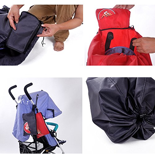 >Made of 600D oxford fabrics,durable and good quality. >Use it to protect umbrella strollers from dirt and germs. >Double back straps for comfortable and easy carrying. >Locking drawstring closure keeps bag securely closed. >Easily folds into attached carrying pouch for storing when not in use.