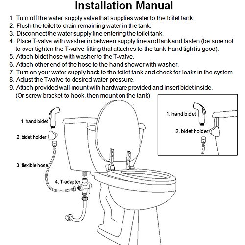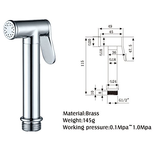 AWESON Quality Brass Cloth Diaper Sprayer, Toilet Sprayer Kit WITH BRASS T-VALVE, Handheld Bidet Sprayer, Hand Held Bidet Shattaf, 1.2m /48 Inch Stainless Steel Hose, Holder and SUS304 Hook (BRASS A)