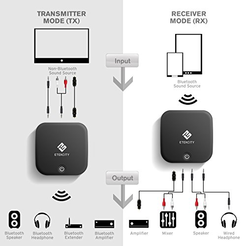 STREAM WIRELESSLY: Breathe new life into older speakers, headphones, or car stereos by turning them into Bluetooth 4.1-enabled devices; able to pair with smartphones and tablets up to 33 feet away. One-year warranty and lifetime support provided by Etekcity