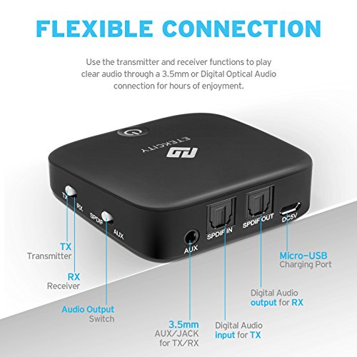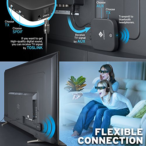 Etekcity 2-in-1 Bluetooth Receiver Transmitter Digital Optical Toslink and 3.5mm Wireless Audio Adapter for TV Home Car Stereo System, Bluetooth 4.1, A2DP, aptX LL (Black)