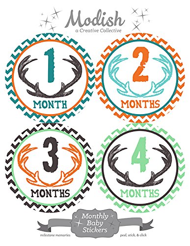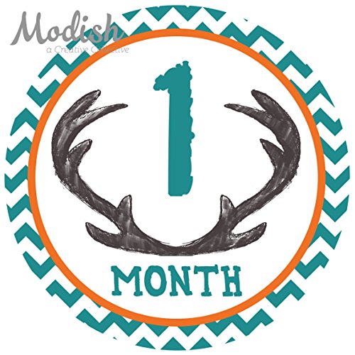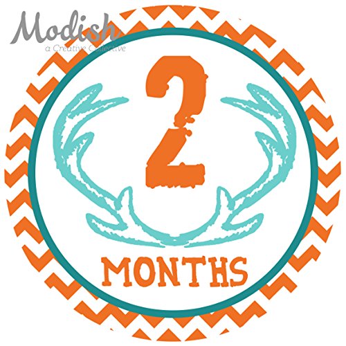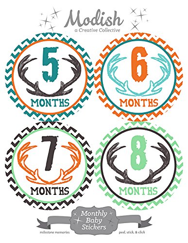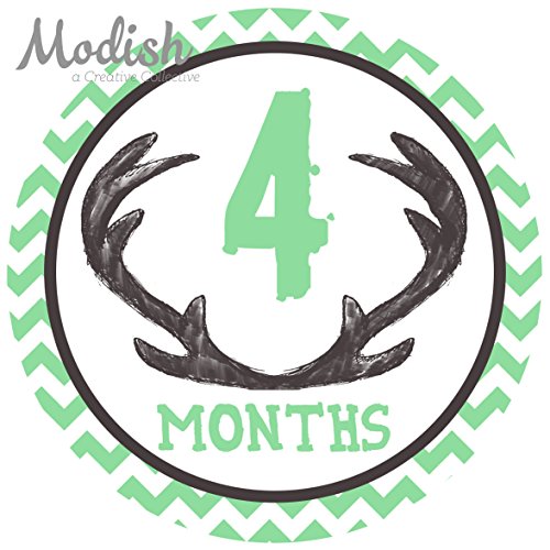 12 Monthly Baby Stickers, Deer Antlers, Boy, Baby Belly Stickers, Monthly Onesie Stickers, First Year Stickers Months 1-12, Chevron, Brown,...