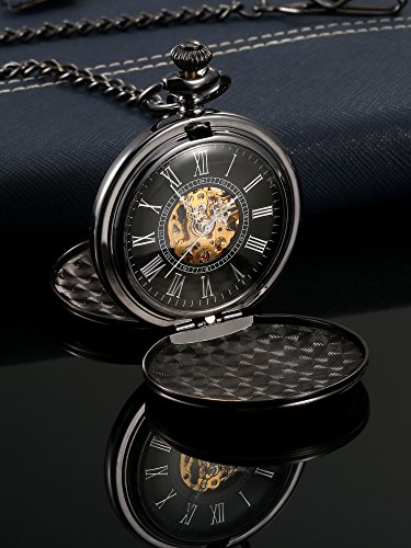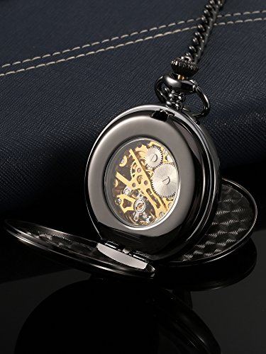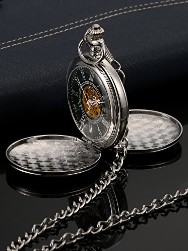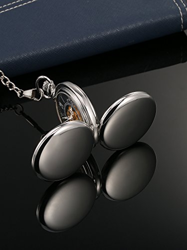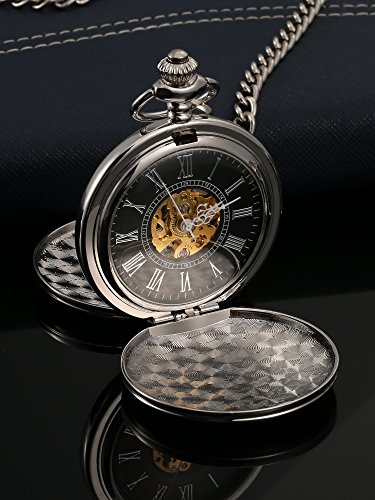 -. Title : Mudder Smooth Double Cover Antique Skeleton Mechanical Pocket Watch Xmas Wedding Birthday Gift
