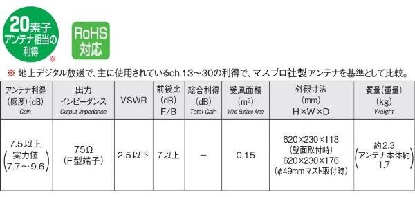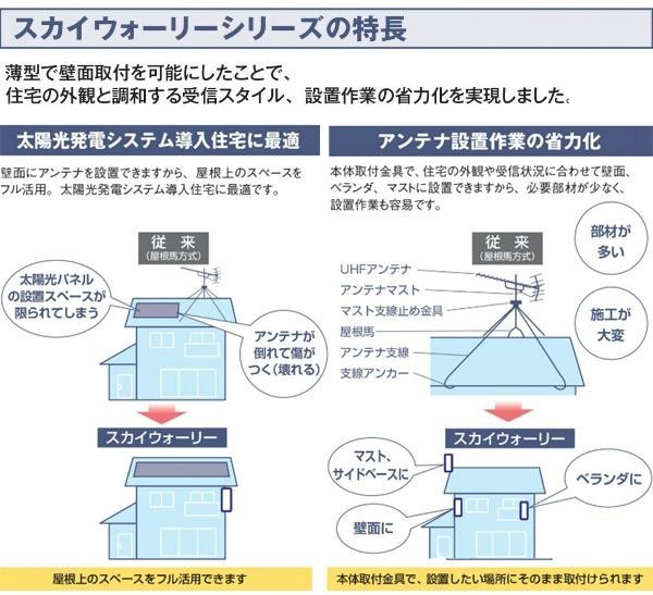 家庭用UHFアンテナです。薄型のスマートデザイン、高い利得性能、省施工を実現しました。