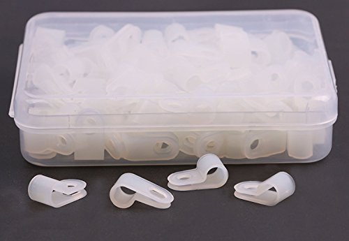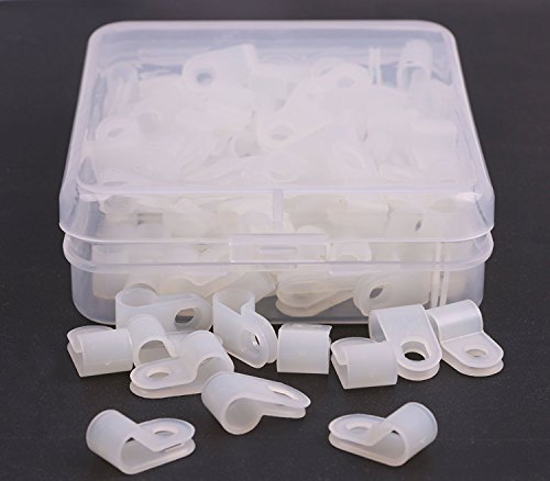 Shapenty White Nylon Screw Mounting R Type Cable Clamp Fastener Plastic Wires Cord Clip Fixer Holder Organizer for 1/4 Inch /6.35mm Diameter Wire Rope Tube Management, 100Pieces/Box