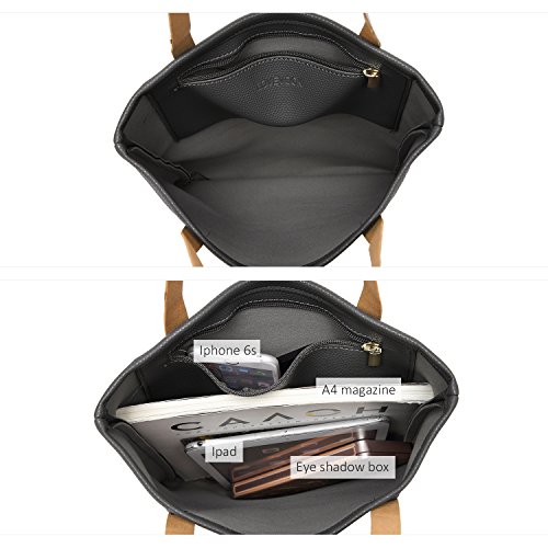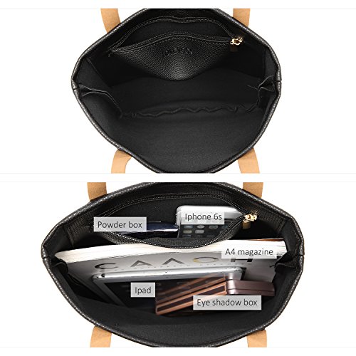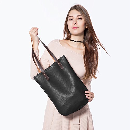 -. Feature : DESIGN: Simple and functional, deep main compartment can keep extra security. Thin but sturdy hit color shoulder straps make the purse more fashionable / CAPACITY: 1 generous main pocket can easily fit your wallet, small camera, sunglasses, makeup, iPad and other daily items. The inside 1 zipper pocket for easy access to small essentials (like lip gloss for touching up, phone,coins) / SUITABLE OCCASIONS: Excellent bag for any occasion like leisure, school, shopping, traveling, dating etc. A good choice for girls, womens and office lady. Also perfect gift choice / QUALITY MATERIAL AND SIZE : Soft and eco-friendly synthetic leather. Durable hardware. Cotton lining. Size: 10.6 " x 15.4 " x 1.2 "(W x H x D). The handle height is 11" . Weight is about 0.77lb / 100% MONEY BACK GUARANTEE - If broken, damaged or wrong items received, just contact us and send a picture, we will full refund or resend within 24 hours