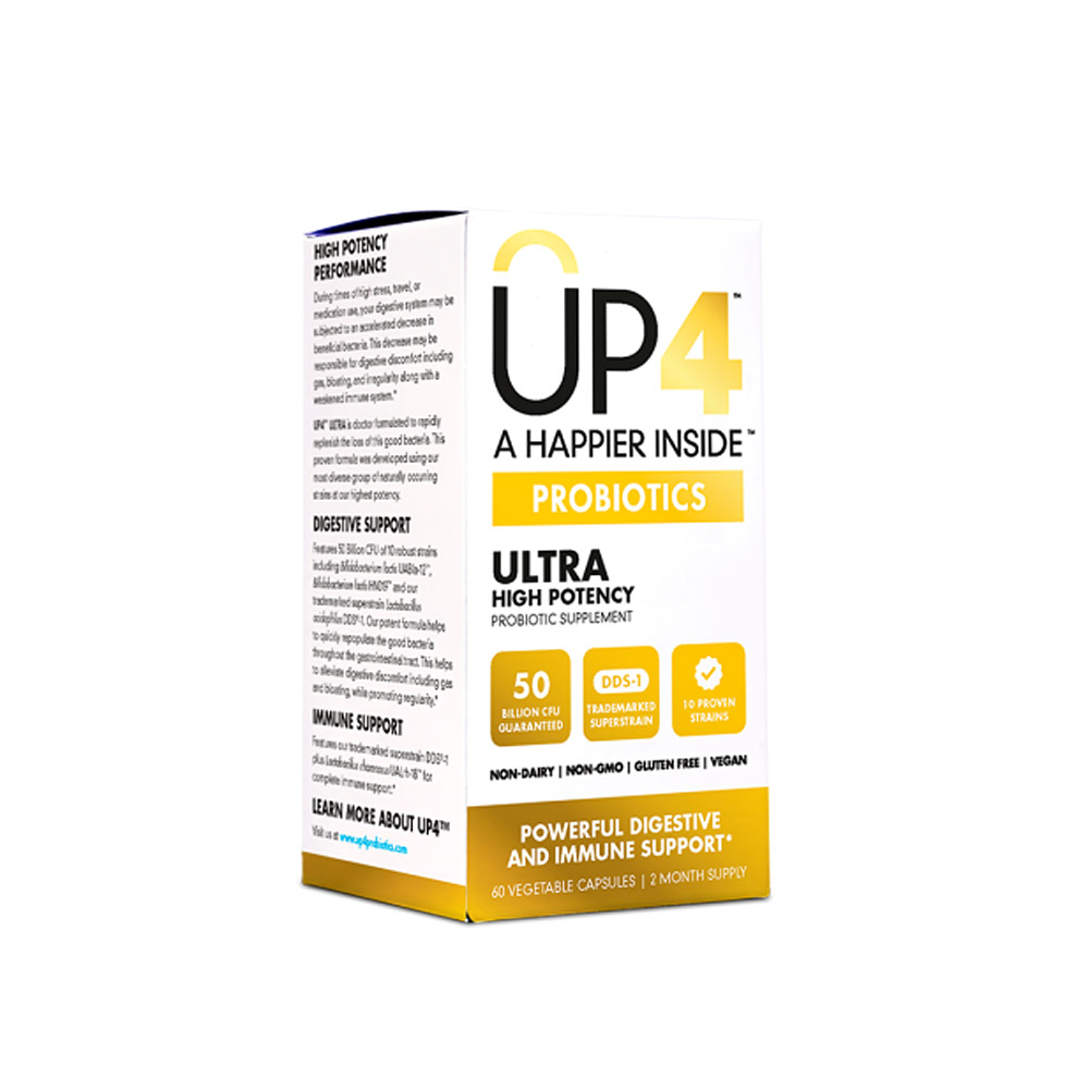 | Up4 Our Top Probiotic? The gold standard of probiotics: 50 billion cultures of our seven premium strains. 50 billion CFU 7 premium strains Non-dairy Non-GMO Gluten Free Soy Free Preservative Free Vegan Not All Probiotic Strains Are Created Equal. Exceptionally resilient, scientifically validated superstrains like Lactobacillus acidophilus DDS-1 are the base for our formulas. Our selected live cultures are proven to naturally withstand stomach acid and bile without the need for chemical coatings. * This statement has not been evaluated by the Food and Drug Administration. This product is not intended to diagnose, treat, cure or prevent any disease. Ingredients : L. acidophilus DDS-1, B. lactis, B. lactis HN019, L. planarum, L. salivarius, B. bifidum, B.longum. Country of origin : USA Gluten Free : Yes Dairy Free : Yes Yeast Free : Yes Wheat Free : Yes Vegan : Yes Size : 60 VCAP Pack of : 1 Product Selling Unit : each |