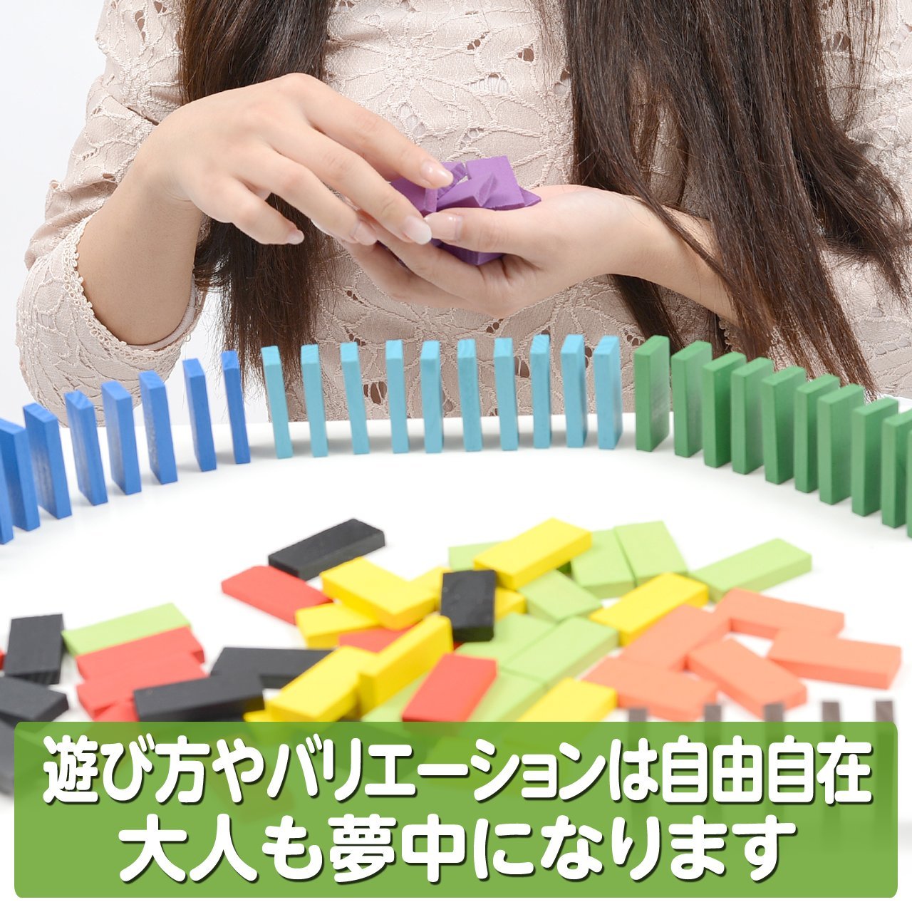 "A sense of accomplishment that lays up domino tiles so as not to collapse" "beauty like domino tiles fall down" nurtures children's attention and concentration.