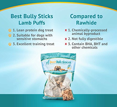 -. Binding : Misc. -. Brand : Best Bully Sticks -. Color : Brown -. EAN : 0840139108235 -. Feature : 100% Lamb: A meaty taste Dogs Love / All Natural: NO Additives, Preservatives or Unhealthy Chemicals / Nutritious Snack: High in Protein and Low in Fat / Crunchy texture: Suitable for dogs of all ages and sizes / Hypoallergenic Treat: Great option for Dogs Sensitive to Beef or Chicken -. Label : Best Bully Sticks -. Manufacturer : Best Bully Sticks -. MPN : 002-0370-5754 -. PackageQuantity : 1 -. PartNumber : 002-0370-5754 -. ProductGroup : Pet Products -. ProductTypeName : PET_SUPPLIES -. Publisher : Best Bully Sticks -. Studio : Best Bully Sticks -. Title : Premium Lamb Puff Dog Treats by Best Bully Sticks (1.5 Pound Value Pack) -. UPC : 840139108235