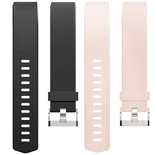 Fitbit charge 2 bands,ZKK Soft TPU Adjustable Replacement Band, Charge 2 Fitness Sport Strap, Small (Black + pink, Small)