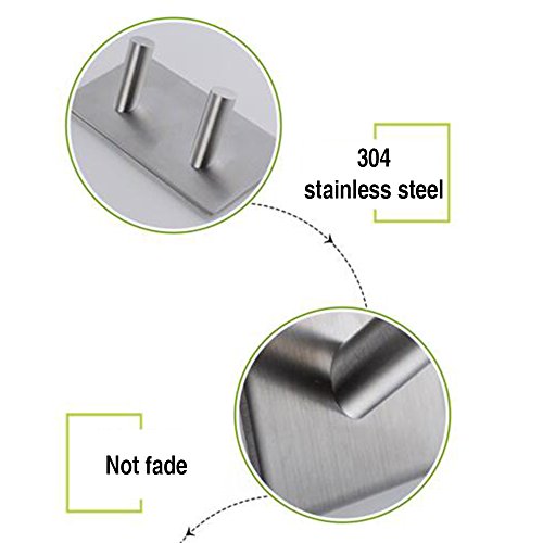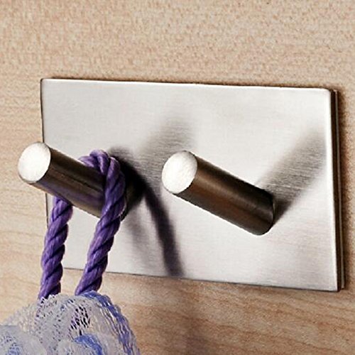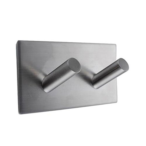 Self Adhesive Hook Key Rack Garage Storage Organizer Stick On Sticky Bathroom Kitchen Towel Hanger Wall Mount Contemporary Style, Brushed Finish 304 Stainless Steel (Double hooks)