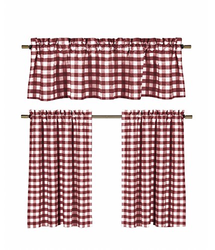 3 Pc. Plaid Country Chic Cotton Blend Kitchen Curtain Tier & Valance Set - Assorted Colors (Wine/Burgundy)