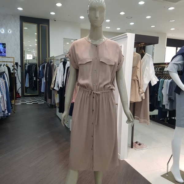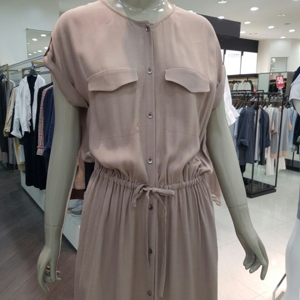 시원한 레이온 소재의 셔츠 원피스로 허리 샤링으로 여성스러움을 더했으며 민소매가 아님 짧은 반팔로 부담없이 착용 가능한 원피스입니다