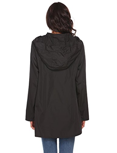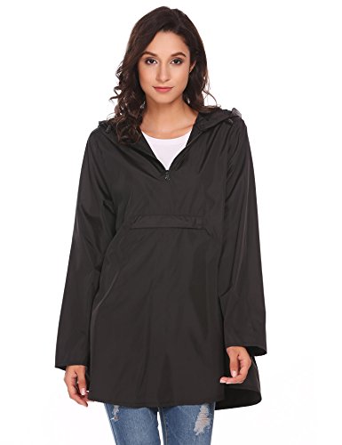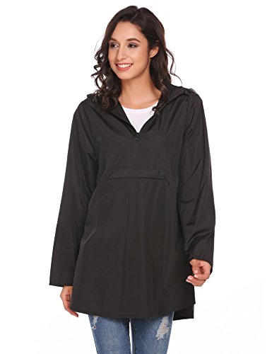 Unibelle Womens Rain Poncho, Lightweight Waterproof Hooded Long Sleeve Solid Reversible Black S