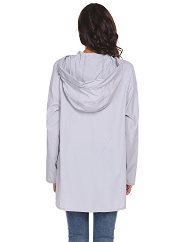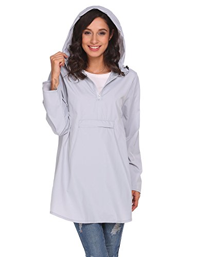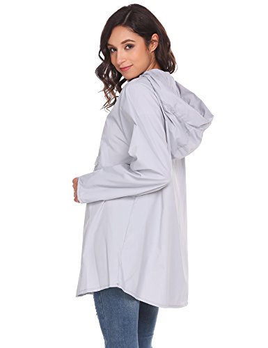 Unibelle Womens Rain Poncho, Lightweight Waterproof Hooded Long Sleeve Solid Reversible Grey S