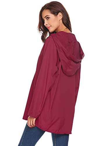 Unibelle Women's Waterproof Raincoat Outdoor Hooded Lightweight Windbreaker Jacket (Small, Wine Red)