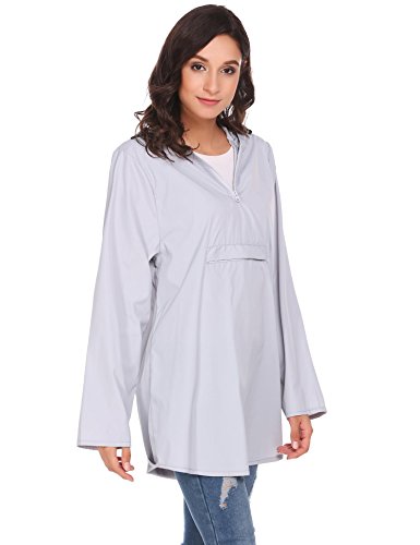 Unibelle Womens Rain Poncho, Lightweight Waterproof Hooded Long Sleeve Solid Reversible Grey L