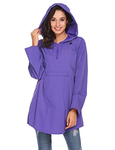 Unibelle Womens Rain Poncho, Lightweight Waterproof Hooded Long Sleeve Solid Reversible Purple S
