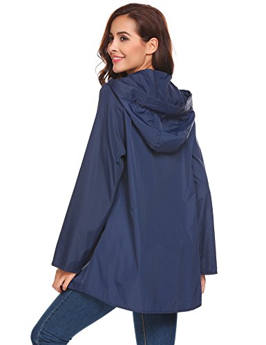 Unibelle Women's Waterproof Raincoat Outdoor Hooded Lightweight Windbreaker Jacket (Medium, Navy)