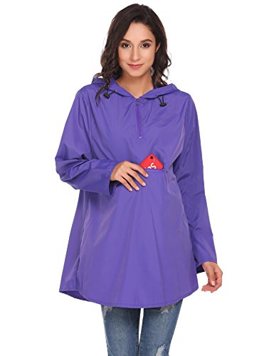 Unibelle Womens Rain Poncho, Lightweight Waterproof Hooded Long Sleeve Solid Reversible Purple L