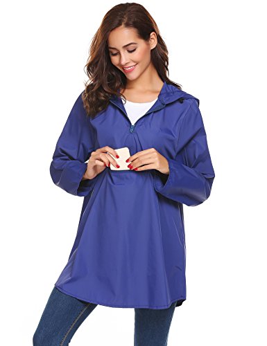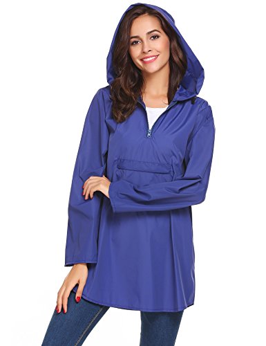 Unibelle Women's Waterproof Raincoat Outdoor Hooded Lightweight Windbreaker Jacket (Large, Royal Blue)
