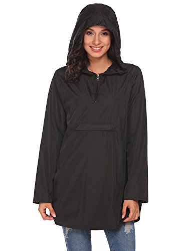 Unibelle Womens Rain Poncho, Lightweight Waterproof Hooded Long Sleeve Solid Reversible Black M