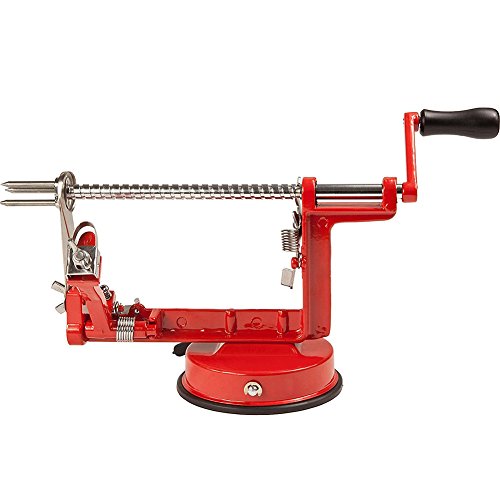 Strong suction base keeps unit firmly in place on smooth,non-porous surfaces.With classic style and function,makes easy work of coring,slicing,and peeling apples or potatoes.