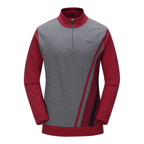 - 사선 라인 배색을 적용한 남성 니트.