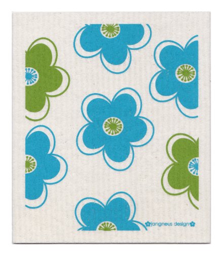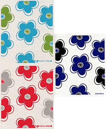 Swedish Dishcloths - Sets of Midcentury Modern Flowers (3, Red + Blue + Turquoise)