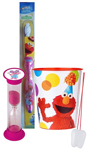 -. Title : Sesame Street "Abby Cadabby & Elmo" Inspired 3pc Bright Smile Oral Hygiene Set! Toothbrush, Brushing Timer & Mouthwash Rinse Cup! Plus Bonus "Remember to Brush" Visual Aid!