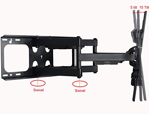 -. Feature : Articulating dual arm TV mount fits most 37" to 70" flat panel LCD TVs(Check TV VESA and Weight) / Extension from wall: about 3" to 25"; Post-installation level adjustment allows the TV to perfectly level to feature / Standard Hardware included. Loading capacity up to 165 lbs, +/-3 degrees rotation for level adjustment / Adjustable 15 degrees tilt forward or 5 degrees backward; 160 degrees swivel from side to side (depend on the screen size) / Articulating TV Wall Mount Bracket Fits VESA 200x200, 300x300, 400x200, 400x400, 500x200,500x300, 600x200,600x300, 600x400 TV LCD LED HDTV Plasma Flat Panel Screen and Display, Fit up to 19.6" stud; Cable management on arm.